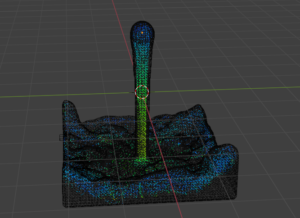 spaceキーを押してアニメーションを再生すると、このように流体シミュレーションが動作します。